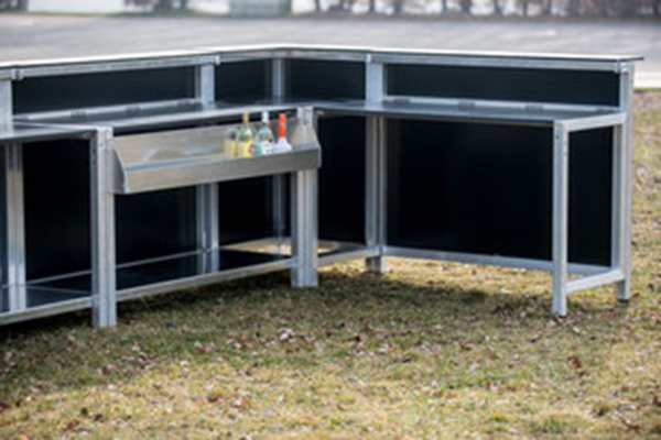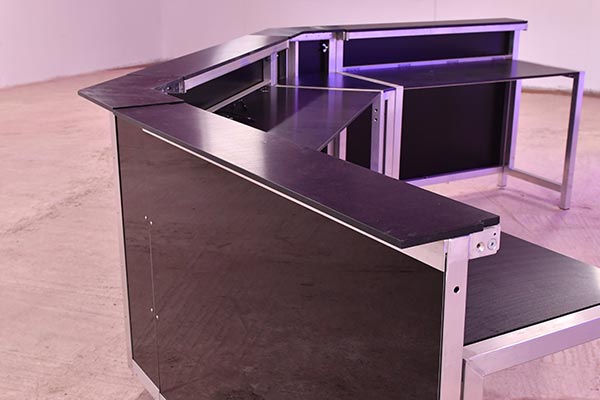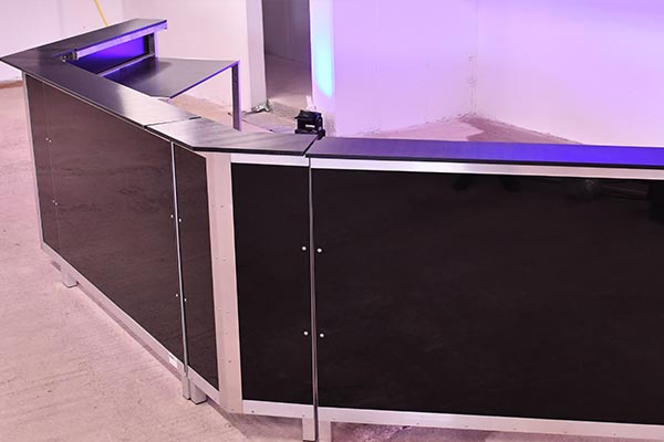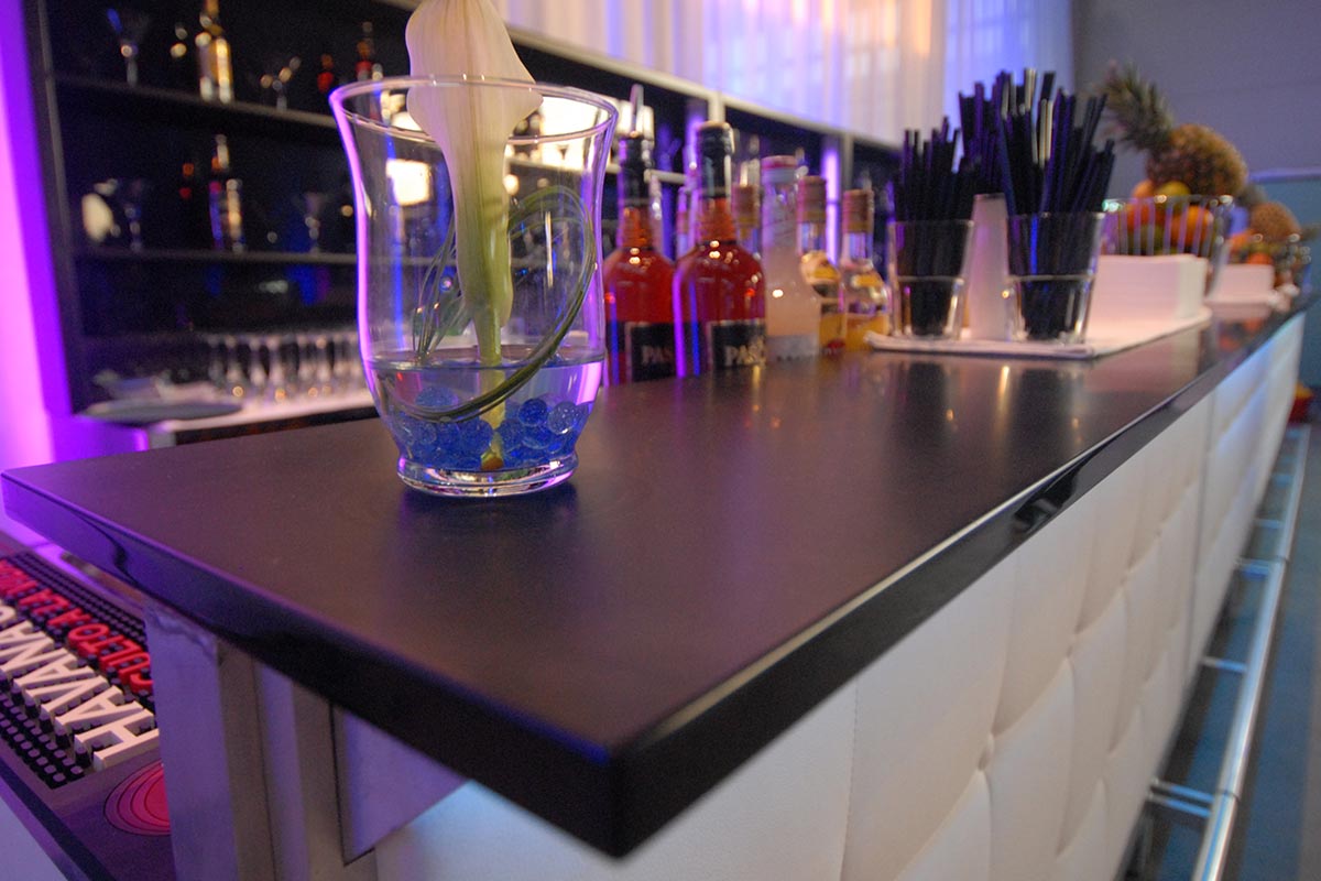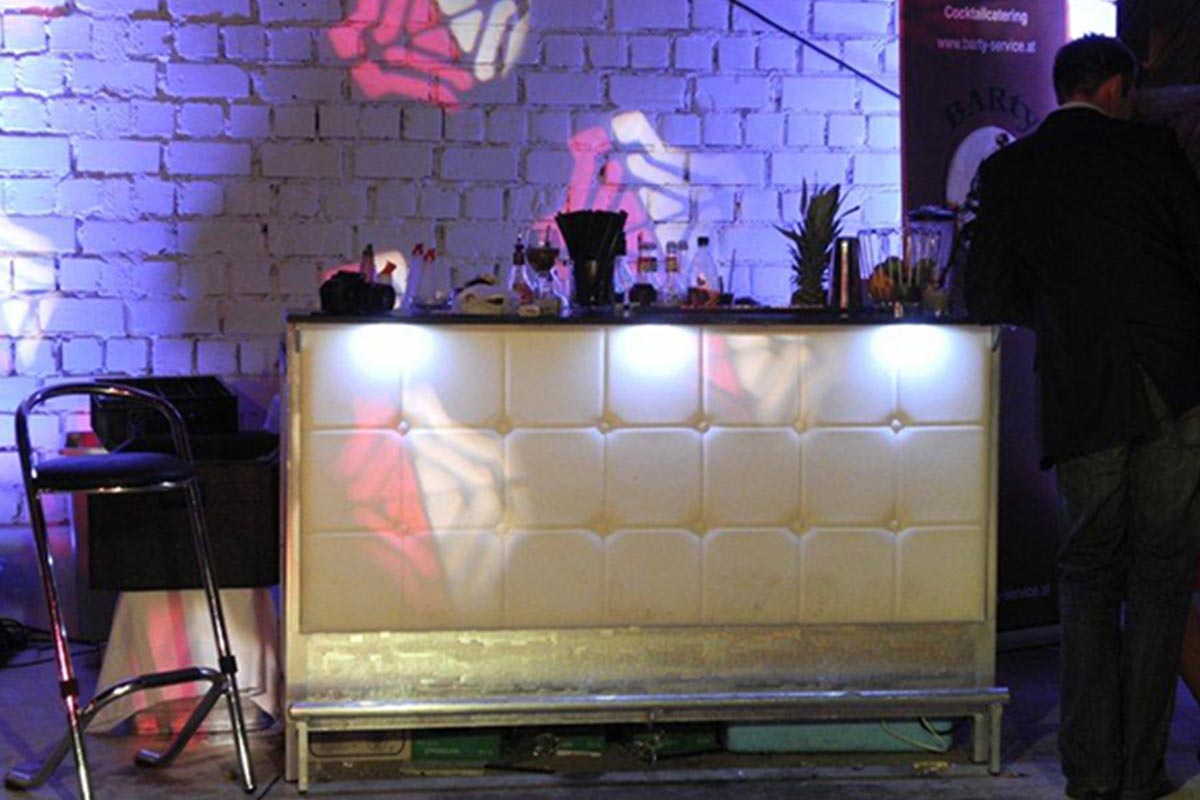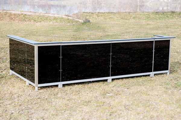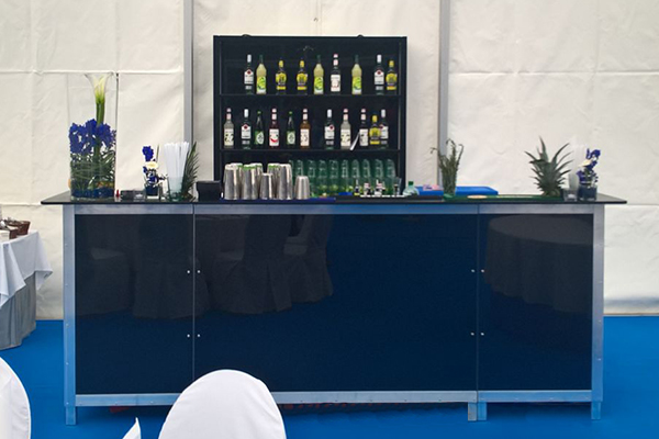 Hier finden Sie die sehr flexible Klappbar für jede Größe Ihrer Veranstaltung, sowie die elegante weiße, mit Kunstleder bespannte Barvariante bis zu ca. 11m Länge.